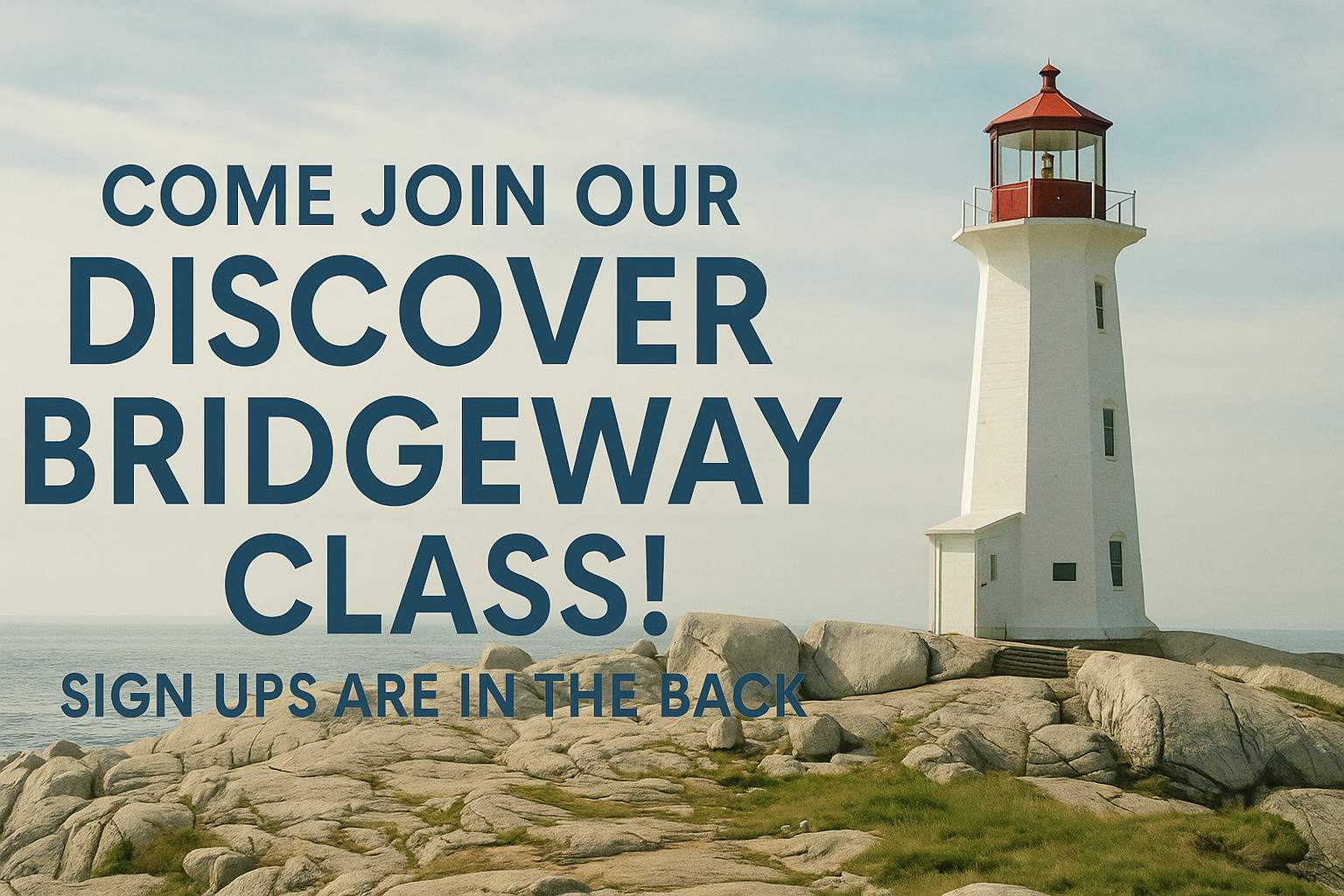 Want to find out more about Bridgeway’s core values, beliefs, and make us your church home? Sign up for our introductory class in the back of the sanctuary today!